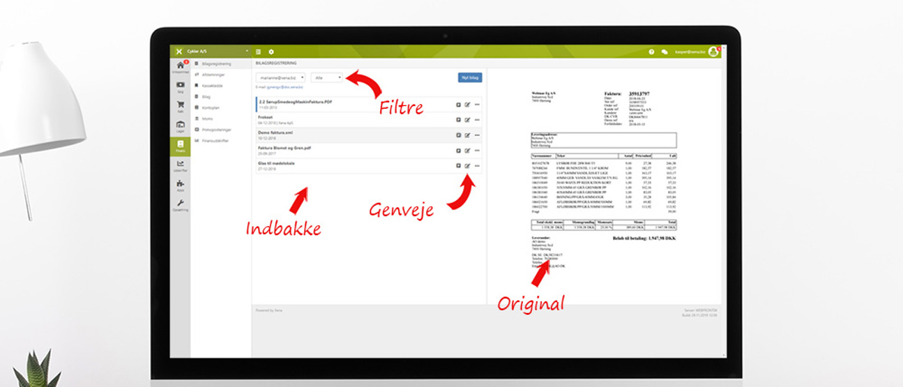 Med det nye design får du et meget bedre overblik over din indbakke for bilag. Ulæste bilag er markeret, så du tydeligt kan se, hvilke du mangler at gøre noget ved. Du kan hele tiden se det originale bilag.