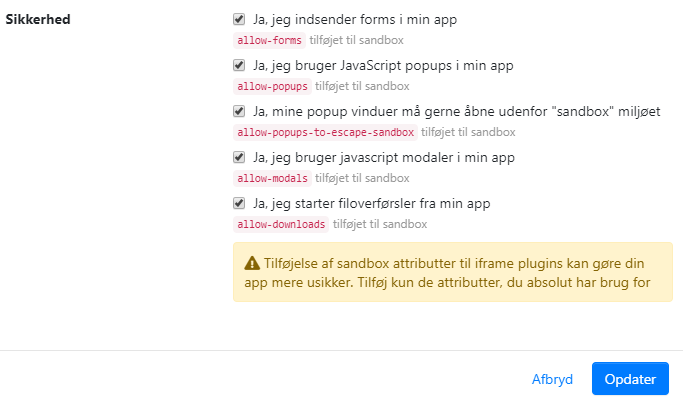 Xena har et åbent 2-vejs API, som gør det muligt for alle at lave integrationer og plugins til Xena. Det er helt unikt for Xena og benyttes af mange. I Google Chomes nye version 83, er der introduceret ændringer til tilladelser for sandboxed iframes. Dette har vi håndteret, så det ikke bliver en udfordring for dine eksisterende apps.