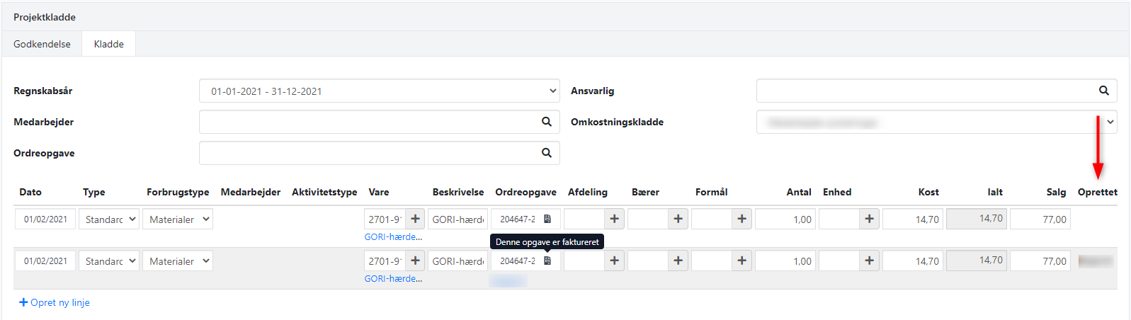 På nye registreringer, efter denne opdatering, er det muligt at se i fanen 'Kladde', hvilken medarbejder der har tilføjet registreringen. Denne information tilføjes også til fanen 'Godkendelse' ved næstkommende opdatering.
