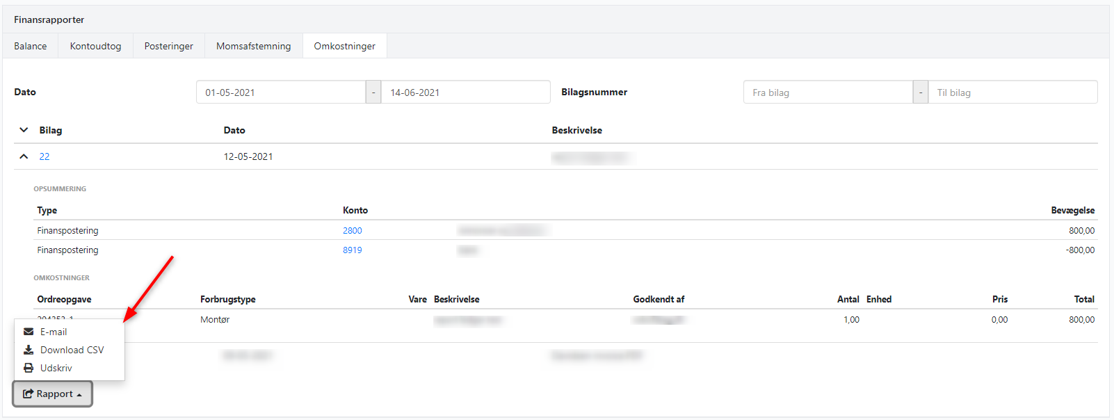 For en måneds tid siden, frigav vi en ny finansrapport, kaldet 'Omkostninger'. Denne rapport viser bilag som har en relation til en projektomkostning. Denne nye rapport har nu fået tilføjet eksport mulighederne CSV og PDF, samt den kan afsendes via mail.