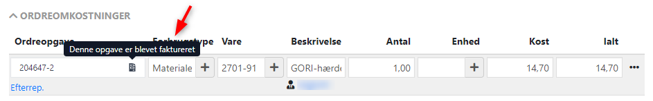 Når du tilføjer omkostningslinjer til et dokument via bilagsregistreringen, kan du nu tydeligt se i feltet 'Ordre opgave' om den allerede er faktureret, inden du påfører yderligere omkostninger.