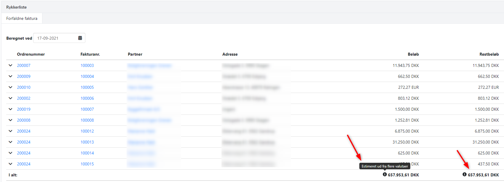 Der er tilføjet summeringer til kolonnerne 'Beløb' og 'Restbeløb' i rykkerlisten.