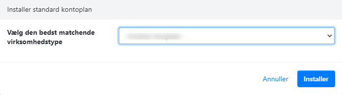 Vælg i listen, den kontoplan som passer bedst til din virksomhedstype og vælg 'Installer'.