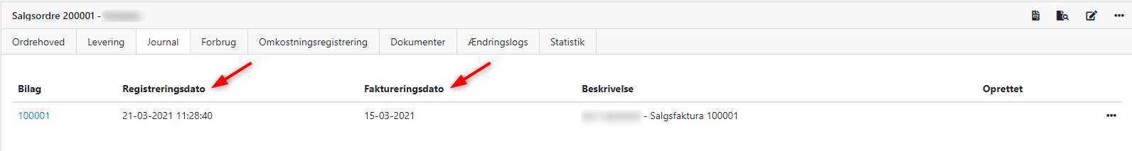 I fanen 'Journal' på salgsordre, er det nu muligt at se både bilagets registreringsdato og faktureringsdato.