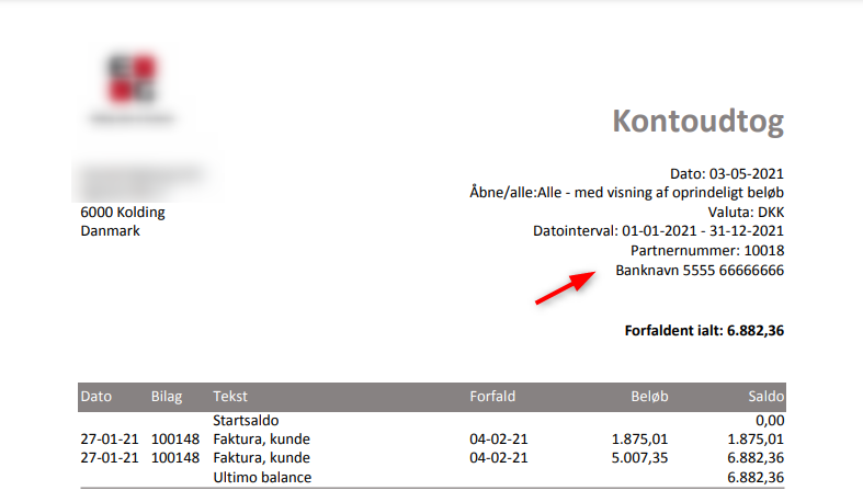Ved udskrift at kontoudtog vil du fremover se, at der er tilføjet information omkring partnernummer og bankinformation til udskriften.