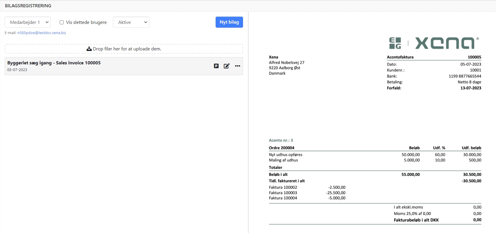I denne opdatering har vi givet lidt mere plads til visning af bilag i Bilagsregistrering, så du bedre kan se alle detaljerne, uden du behøver at åbne bilaget i særskilt vindue. Herunder ser du forskellem mellem før og nu.