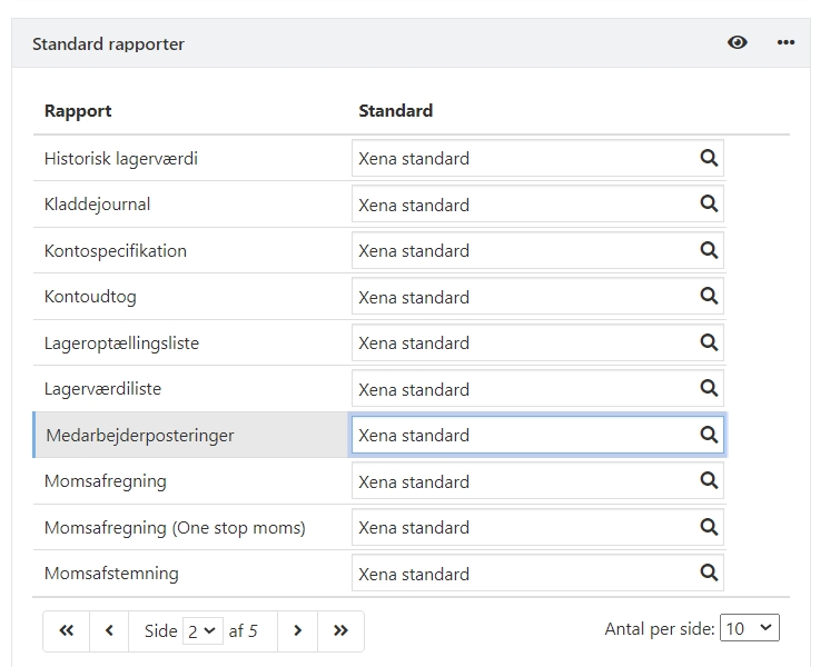 Hvis du har en brugertilpasset version af rapporten, men du ønsker at skifte over til den nye standard, skal du i rapportvalget for Medarbejderposteringer vælge Xena standard. Du kan her læse hvordan du skifter rapportvalg.