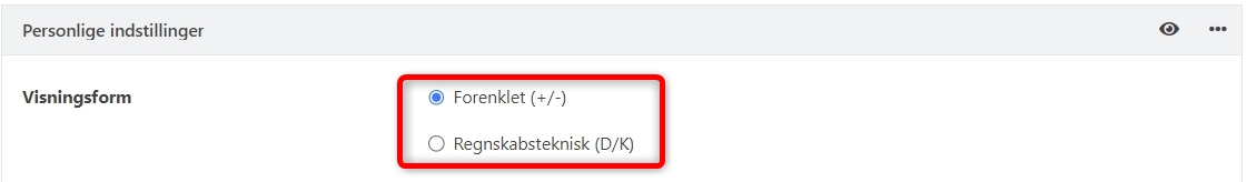 Vi har ændret standardindstillingen for visningen af beløbsfelterne i bilagsregistrering og kassekladden. Hvis du ikke selv tidligere har ændret indstillingen for beløbsvisning, vil den nu automatisk være blevet ændret til 'Regnskabsteknisk (D/K)'.