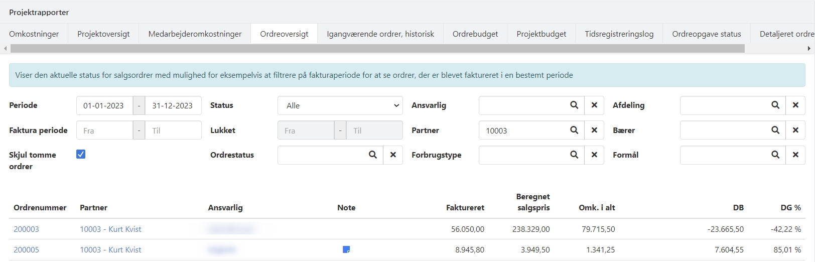 Projektrapporten Ordreoversigt