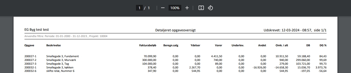 Herunder ses eksempel på det nye rapportlayout: