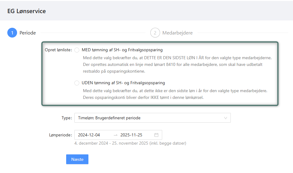 Ved hver lønoverførsel skal du vælge én af de to muligheder. Hvis du ikke foretager et valg, kan lønnen ikke overføres.