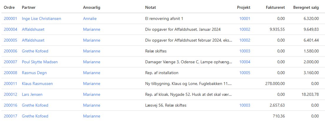 Herunder kan du se et eksempel på, hvordan dette ændrer visningen i rapporten Ordreoversigt. Hvis du har svært ved at se de to eksempler, kan du prøve at trykke Ctrl + plus et par gange for at zoome ind i browseren, så alt vises større.