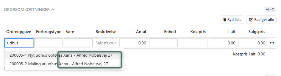 Kundenavn og adresse ved søgning i opgaver