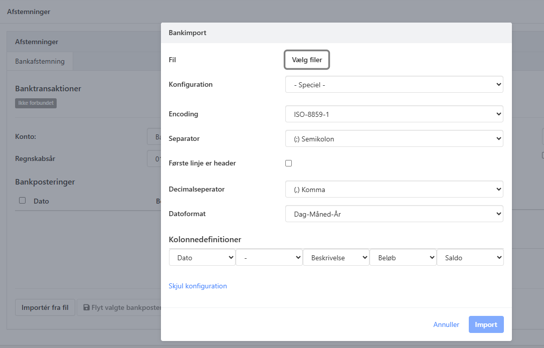 Alle skærmbilleder til import af data er blevet opdateret. Som bruger vil du ikke opleve de store ændringer, men i enkelte importdialoger kan du se:
