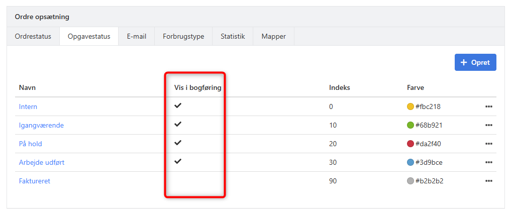 - Gå til Opsætning > Ordreopsætning > Opgavestatus