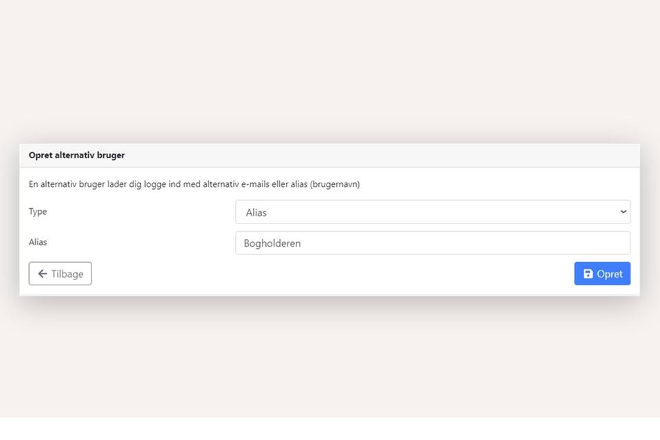 Tryk på 'Opret ny alternativ bruger'
