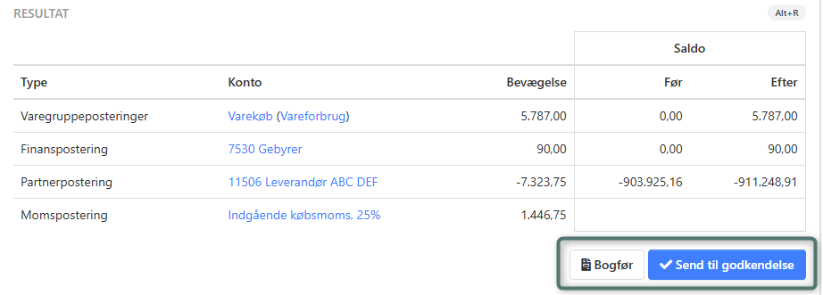 Brugeren bogfører bilaget ved at trykke på Bogfør.