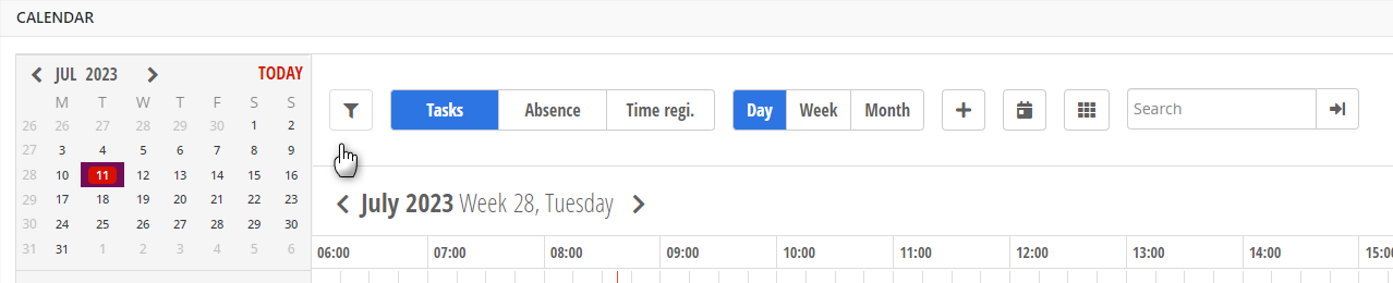 For at komme godt i gang med planlægningen af opgaver, er det vigtigt at tilpasse kalenderen efter din virksomheds behov. Gennemgå derfor vejledningen for Kalenderopsætning inden du tager kalenderen i brug. Du finder kalenderen via menuen Tid > Kalender.