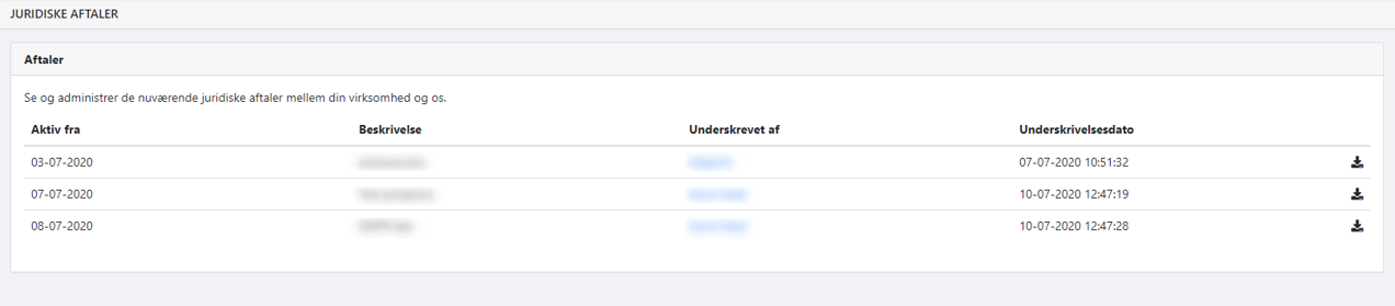 Via et nytt menypunkt, nederst i modulen 'Virksomhet', kan du nå se versjonene av Databehandler avtaler som du har inngått, i forhold til bruk av Xena. Her kan du se hvilken bruker som har godkjent hvilken databehandleravtale på vegne av selskapet ditt. Hvis du vil lese avtalen på nytt, kan den lastes ned fra denne nye visningen.