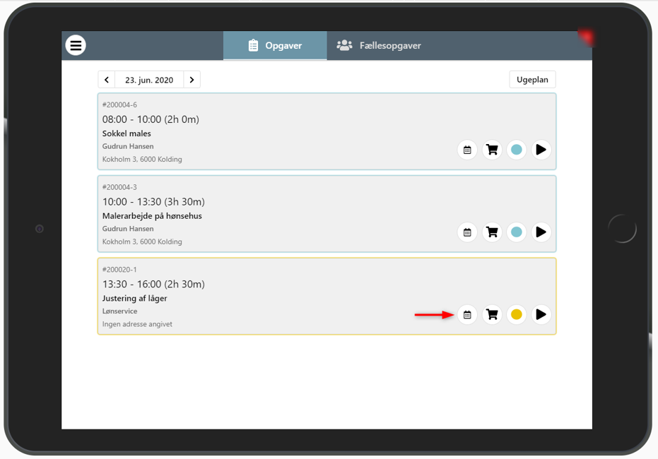 Vi har lagt til et nytt kalenderikon til oppgaven, se bilde nedenfor. Etter å ha klikket på det nye ikonet, er det mulig å flytte avtalen til en annen dato, tid og endre varigheten på avtalen.