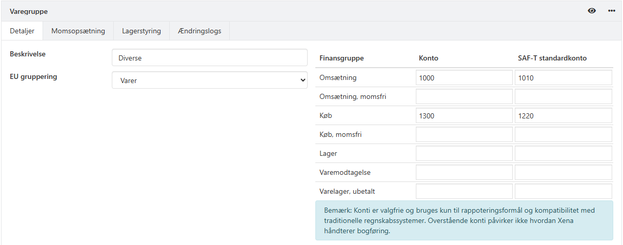 Når du for eksempel oppretter en konto i gruppen Nettoomsetning, opprettes det samtidig en rekke tilknyttede kontoer, for eksempel: