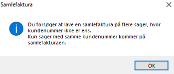 Ved samlefakturering af hovedsag og undersager, hvor kundenummer er forskelligt, fik man en fejl.