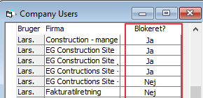Tryk på knappen Bloker regnskab og ændrer nej til ja ud for de regnskaber, som brugeren ikke må få adgang til.
