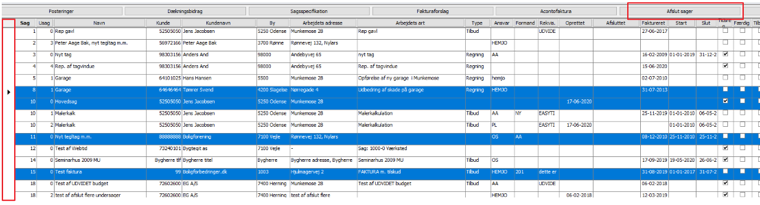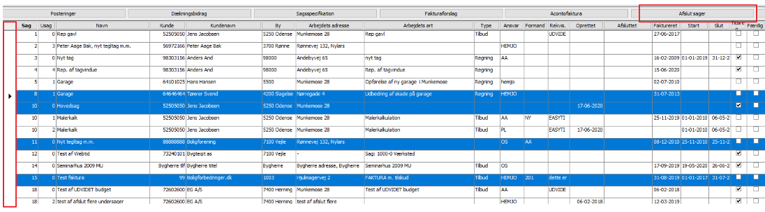 Vil man afslutte flere sager på én gang, kan man holde ctrl. nede og markere sagerne ude i det grå felt til venstre og herefter trykke på knappen "Afslut sager"