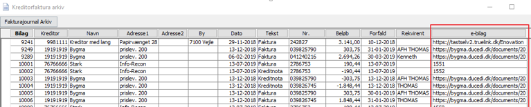 Kreditor > Købsfakturaer > Fakturaarkiv