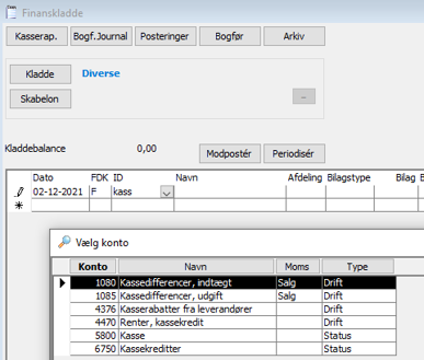 Søgningen vil vise de kontonavne, der er fundet i søgningen. Vælg den ønskede konto og forsæt indtastningen. Samme søgning kan laves på debitorer og kreditorer.