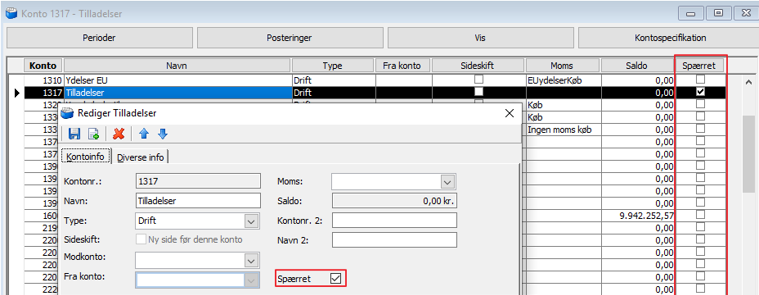 Man kan spærre en finanskonto i kontoplanen, så der ikke kan bogføres på kontoen.