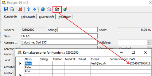 På debitor har man mulighed for at sætte EANnummer på en kontaktperson.