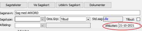 Datofejl ved afslutning af sag i feltet Afsluttet - rettet
