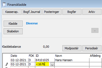 Det er muligt at taste på en del af et kontonummer eller kontonavn i ID-feltet efterfulgt af enter.
