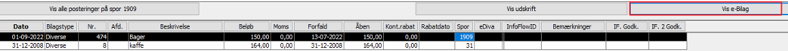 På de bogførte poster på debitor/kreditor/finans bliver bilaget synlig ved tryk på "Vis E-bilag"