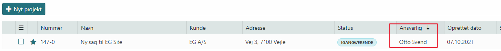 Site projektleder i Visual Administration sættes fremover på projektlisten i EG Construction Site