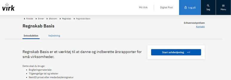 Webside: https://virk.dk/myndigheder/stat/ERST/selvbetjening/Regnskab_20/