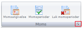 I "Ny" visning findes der dropdowns i hovedmenuen under Finans, der åbner op for andre relevante menuer. Eksempelvis i momsgruppen, hvor man finder en lille pil i gruppen. Trykker man på den åbnes flere muligheder.