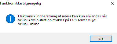 Inden længe vil man kunne indberette moms fra Visual Administration til SKAT. Indtil videre kan man kun teste funktionen - der er ikke åbnet op for automatisk indberetning endnu.