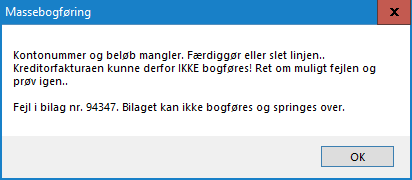 Benytter man knappen "Bogfør klargjorte", vil fakturaen ikke blive bogført, men der vil være en henvisning til hvilken faktura, der fejler.