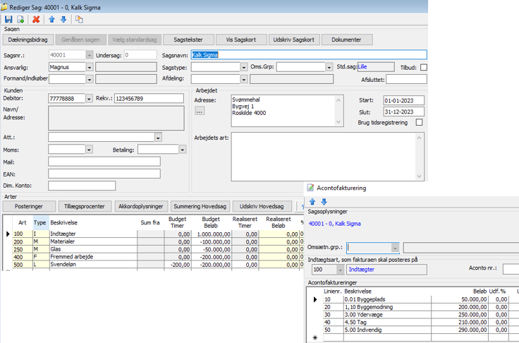 Sagsfakturering / Acontofakturering