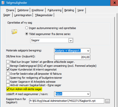 Det er blevet muligt at opsætte på brugeren Admin, at det kun er den bruger, som må slette sager.