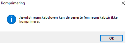 Der er sat en blokering på komprimering af regnskabsår, således der kun kan komprimeres for perioder, der er minimum 5 år gamle.