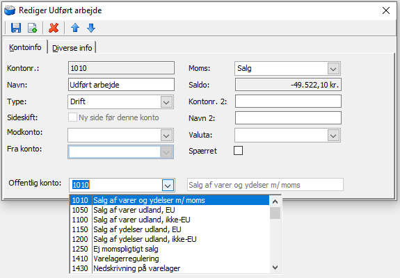 Det er muligt at koble egen konti i kontoplanen sammen med den offentlige kontoplan, som det kræves af Erhvervsstyrelsen. Kobler man flere af egne konti sammen med én offentlig konto, vil disse blive sammenlagt.
