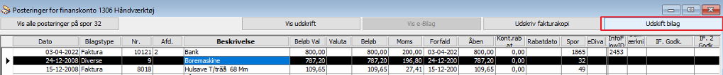 Originalfaktura vises på indtægtsarten i Posteringer.