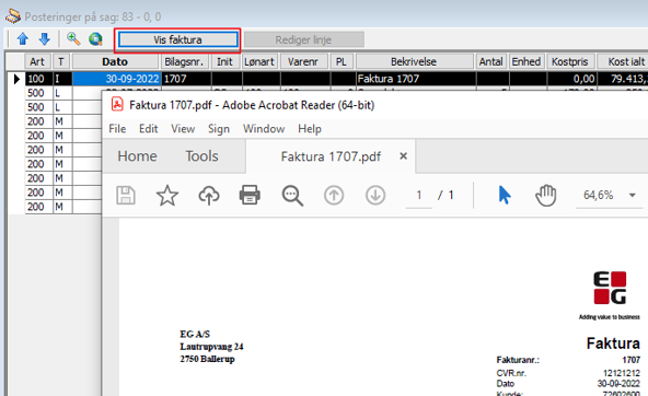 Original salgsfaktura vises fremadrettet flere steder i EG Visual.