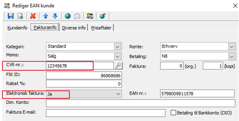 På kunden skal man forsat sætte CVRnr. på og der skal står "Ja" til Elektronisk faktura.