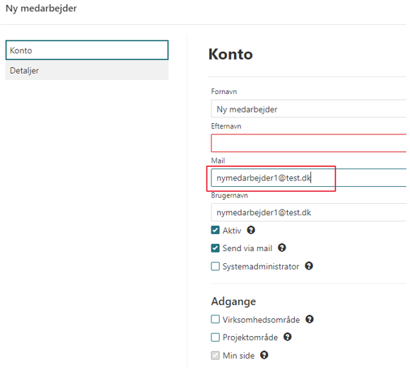 Det er vigtigt, at medarbejderens e-mail adresse er udfyldt og at påsætte en primær lønart.