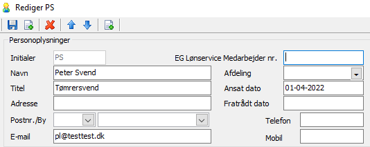 Indsæt den kopierede mailadresse fra feltet Notat i E-mail-feltet, tast Ansat dato og primær lønart på medarbejderen og tryk Gem.