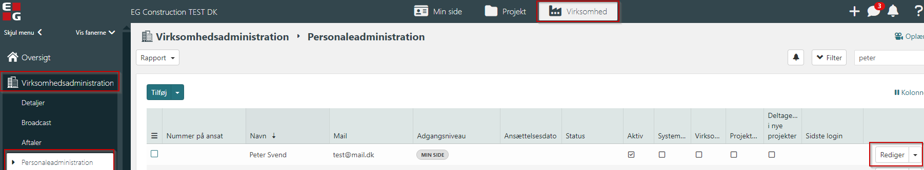 Find medarbejderen og tryk Rediger.